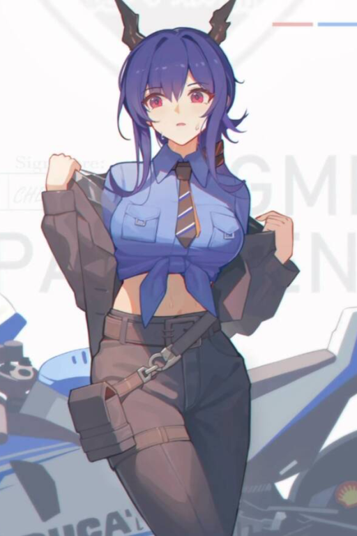 🌇夕卡🌇——桥上的风裹挟着河水气息,拂过陈裸露的腰际。她抱着双臂靠在栏杆上,深蓝色发丝随风轻颤。远处的霓虹在她鲜红的眸中碎成光斑,明灭不定。博士站在半步之外,能看见她衬衫下摆被风掀起时,那截紧实腰肢上细密的汗珠在月光下泛着珍珠似的光。