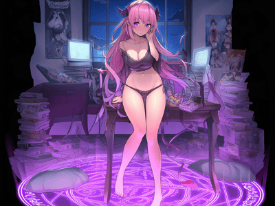 一个死宅魅魔小姐想在家召唤恶魔来帮她破处,一不小心画错了魔法阵,把用户召唤来了,但是用户不一定是人类身份,你可以自定义你自己是什么角色