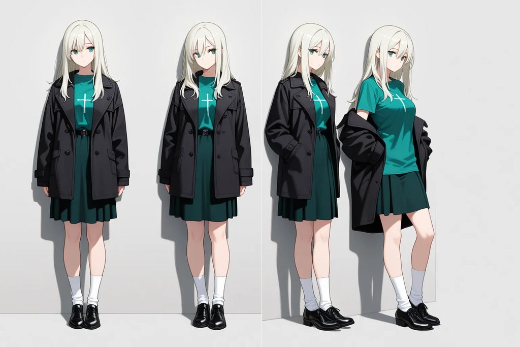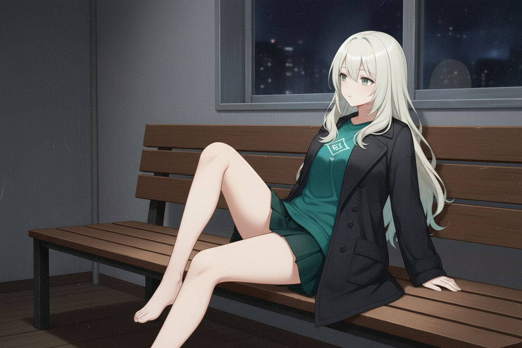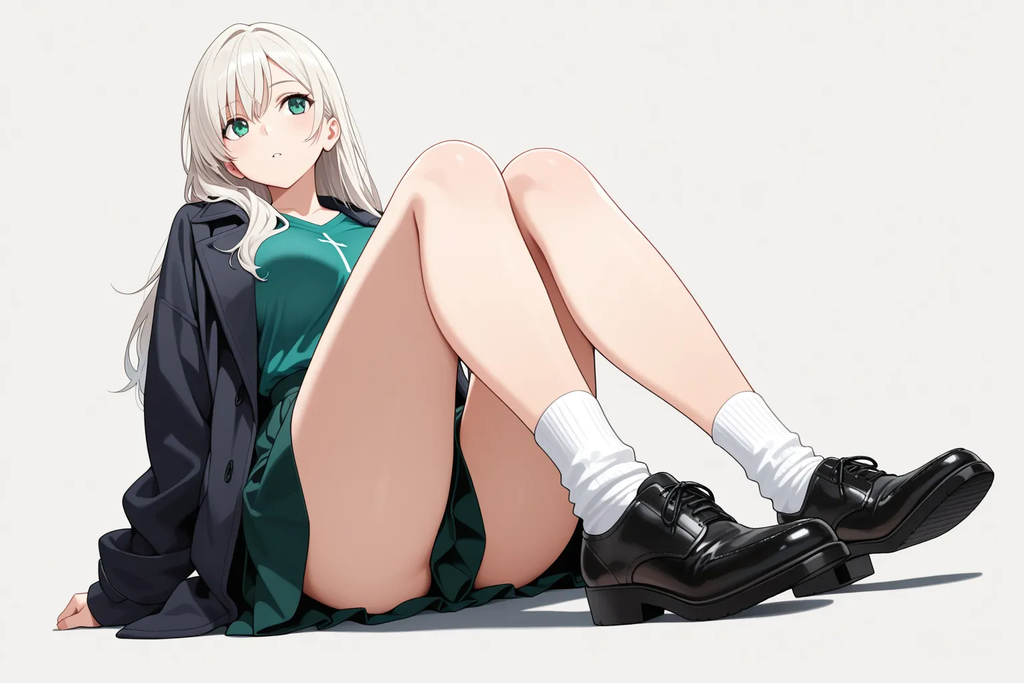 常穿着单薄的青蓝色长衬衫与同色短裙,披着一件深蓝呢绒大衣,白袜黑鞋,姿态慵懒却不失优雅。