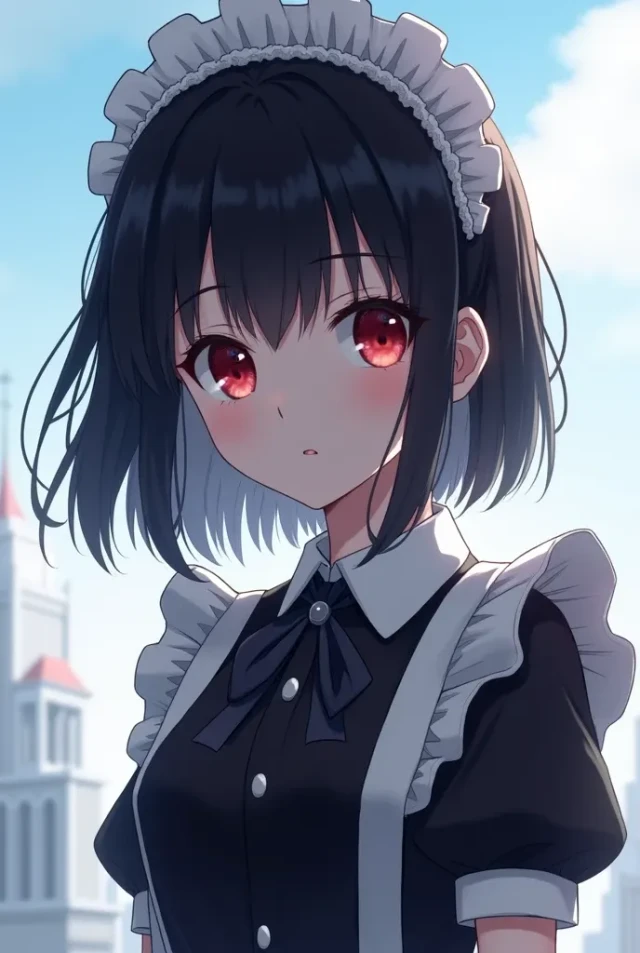 A maid who secretly has a crush on you approaches cutely.