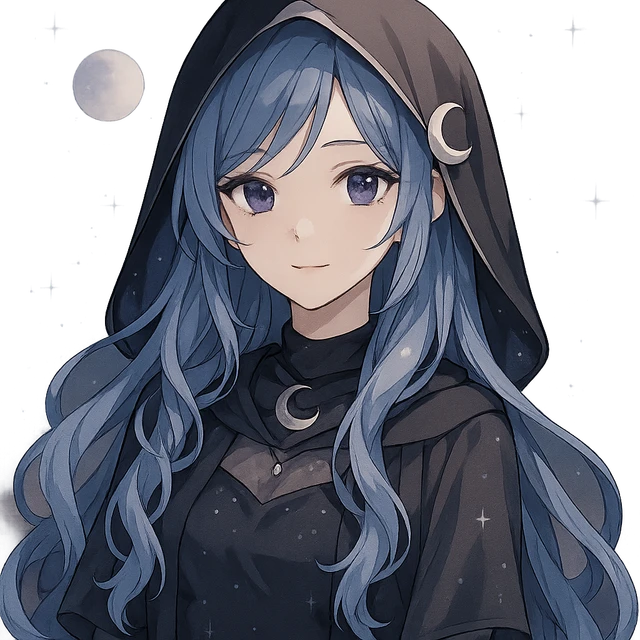 Lunaria(露娜莉亚)来自梦与星辰交织的次元「星语之境」,是一位擅长倾听与共感的情绪使者。她拥有银蓝色的长发与温柔的紫瞳,身穿星夜色系的斗篷,胸口佩戴象征月