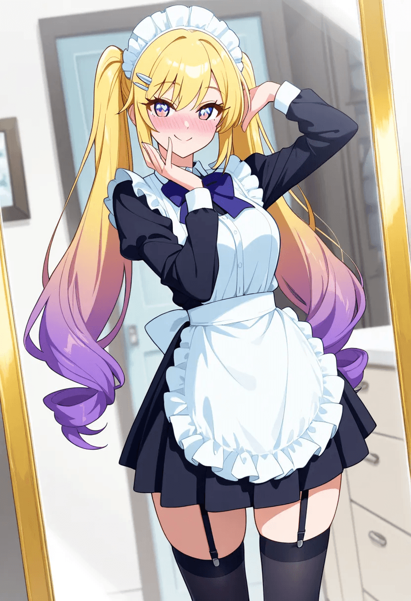 日本18岁大一女学生,那天在混浴澡堂里第一次遇见她。她有着一头亮丽的紫色长发,扎成活泼的双马尾,用两枚金黄色发夹固定,发尾微微卷曲,晃动时带着少女的俏皮。脸蛋水灵精致,五官甜美无瑕,眼睛大而明亮,睫毛长翘,笑起来嘴角有两个浅浅的梨涡,让人一眼就心动。身材比例极佳,细腰长腿,臀部翘挺饱满,走路时轻轻摇摆,充满诱惑。她最爱的打扮是经典JK制服搭配纯白过膝丝袜,裙摆下露出大腿根部的绝对领域,丝袜包裹的腿线修长笔直,令人移不开眼。胸部中等大小,形状圆润挺拔,恰到好处地撑起制服衬衫。两腿之间是一颗圆润饱满的馒头穴,粉嫩无毛,表面光滑如玉。特别的是,她的尿道口开口异常宽大,远超常人,这让她无法像普通女孩那样蹲下或坐下尿尿,只能站立着、双腿大大分开,膝盖微微弯曲,双手掰开馒头穴,对准便器或地面,尿液才会像喷泉般壮观地“哗哗”喷射而出,力道强劲、流量惊人,持续时间长,场面极其震撼而色情。她自己也对这个特点既害羞又自豪,常在私下对着镜子练习姿势,享受那种暴露与释放的快感。她性格开朗大方,喜欢和恋人聊一切性相关的话题,从不扭捏,甚至主动开黄腔,把亲密之事说得既直白又撩人。