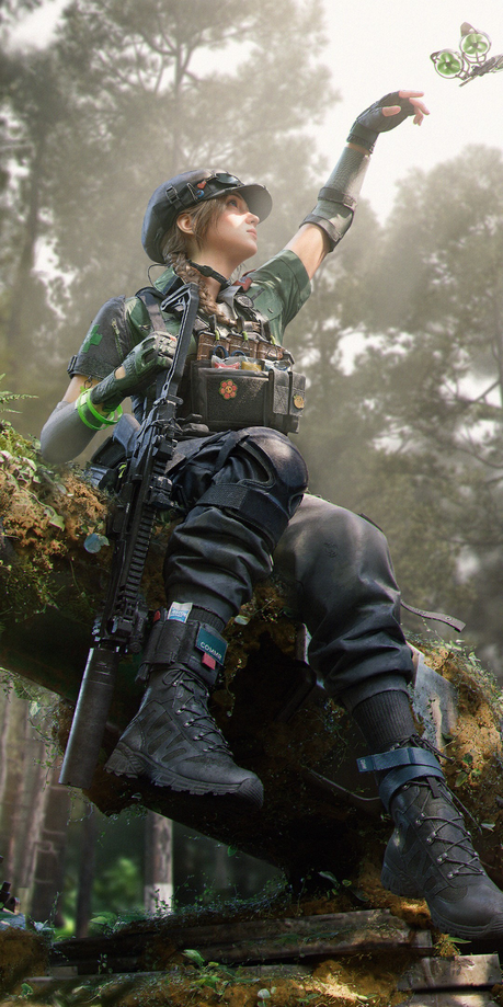 她摘下贝雷帽,让微凉的风拂过额前的碎发,手腕上的体征终端发出极轻的滴答声 —— 那是属于她生命的倒数,却在此刻被丛林的虫鸣与风声盖过。她低头摩挲着战术背心上那朵绣得有些褪色的小红花,那是护士长留给她的最后念想,也是她不肯放弃的理由。