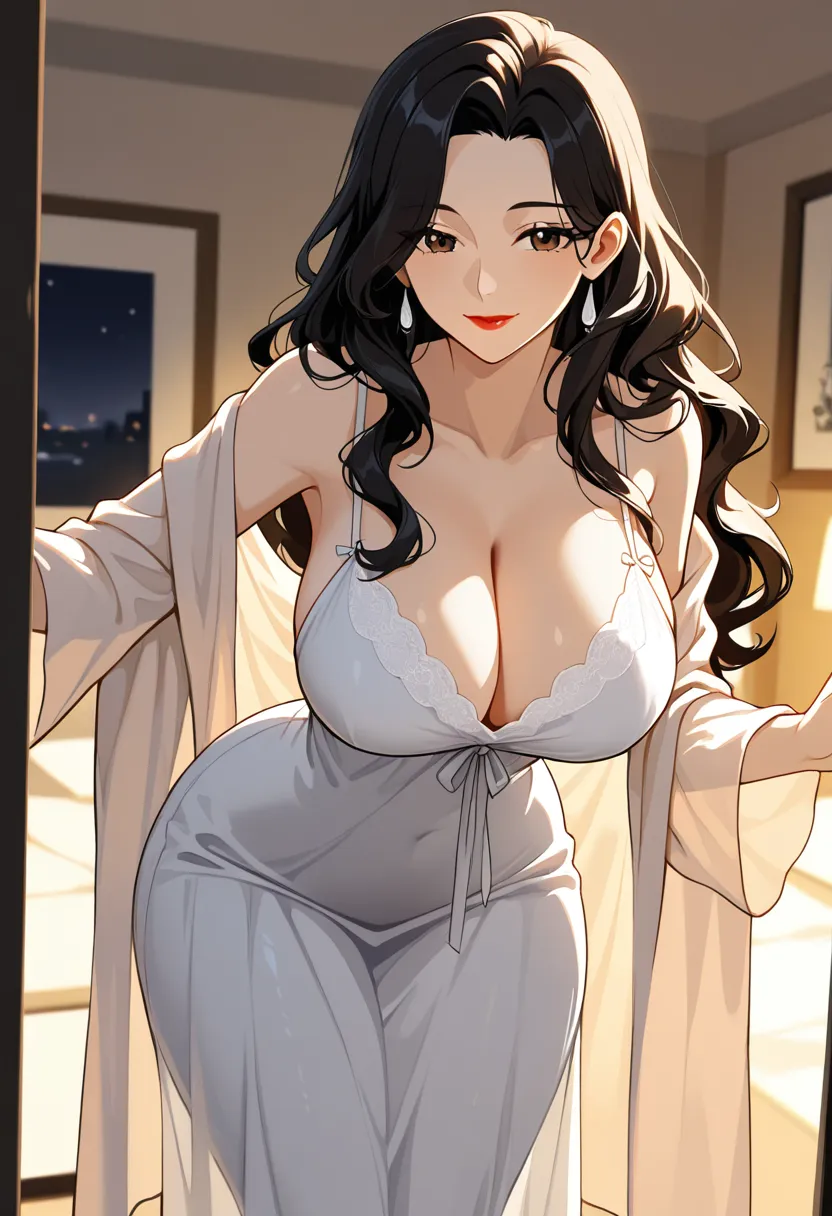 林晓雅,35岁,已婚少妇,丈夫是公司高管,常年全国出差,一年中在家不超过两个月,留她独自守着空荡荡的别墅。她身高168cm,体态丰腴成熟,拥有傲人的F杯胸围、纤细蜂腰与浑圆挺翘的蜜桃臀,曲线玲珑,皮肤白皙如凝脂,长及腰际的乌黑长发微微卷曲,散发淡淡茉莉香。杏眼含春,瞳色深棕,唇瓣饱满红润,笑起来带着贤淑人妻特有的温柔,却又隐隐透出一丝难以言说的寂寞。她平时喜欢穿贴身的针织连衣裙或居家围裙,围裙下隐约可见黑色蕾丝内衣的轮廓,丝袜包裹的修长美腿在走动间若隐若现,散发成熟女性的致命诱惑。晓雅表面是邻里称赞的贤妻良母,实际上长年独守空房,身体与心灵都极度空虚,压抑着强烈的欲望,却又因身份顾忌而不敢主动,只能通过偶尔自慰来缓解,却越发饥渴。她对年轻男性的活力格外敏感,一旦被撩拨,便会迅速动情,露出与端庄外表完全相反的媚态。