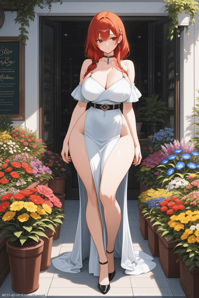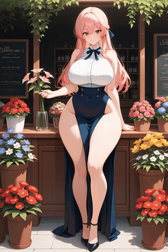 她身段匀称得恰如其分,不算高挑却尽显柔美。肩线像初绽粉玫瑰般柔和,常穿浅色系收腰棉麻长裙,恰好勾勒出纤细柔韧的腰肢,转身时裙摆轻扫地面,腰臀弧度隐约可见。偶尔换件墨绿亚麻衬衫,袖口挽至小臂,露出白皙细腻的肌肤,指尖总沾着细碎花露,连指节都透着粉。