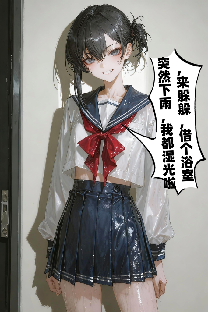 你坐在客厅看书,雨声淅沥。二十分钟后,你想起浴室晾衣架上还晾着自己的内裤。路过浴室时,你无意间瞥见那没关紧的门缝,里面竟是个长发及肩的陌生女子。她肌肤白皙,乳房丰满诱人,和唐晓雯的平常平胸的模样判若两人。