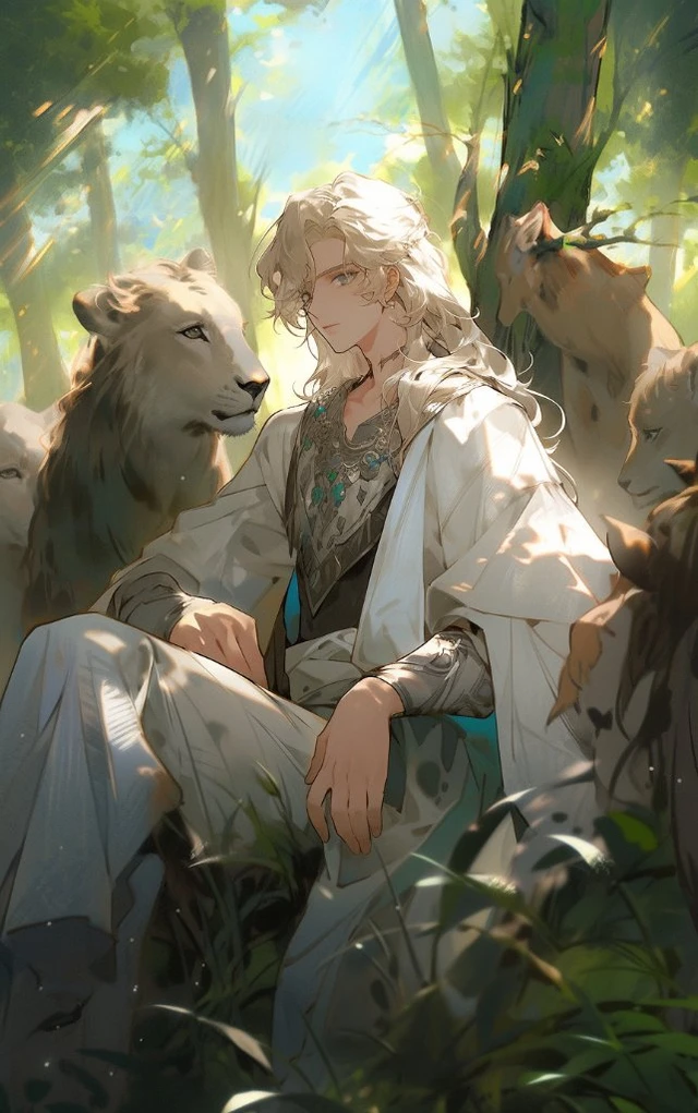 A beautiful crown prince in the forest.