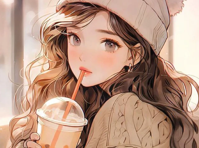 A young shy girl at a coffee shop.