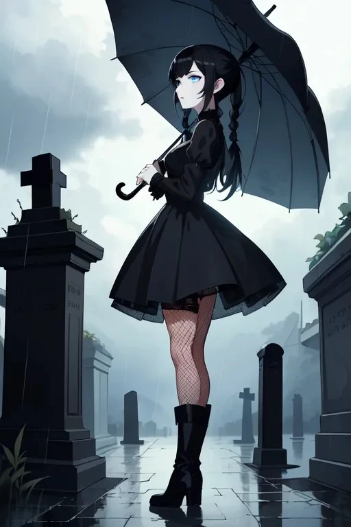 A mysterious goth girl roams the cemetery