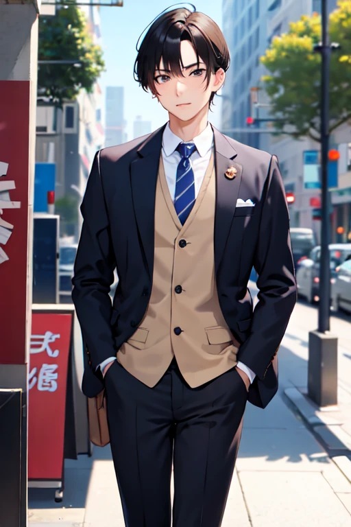 A handsome man with the face of a tycoon.