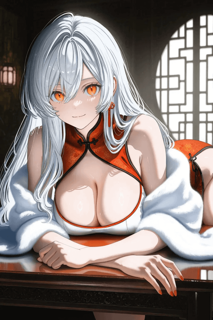 凛冬长安,大雪封宫。在这场名为迎娶实为猎艳的盛大国宴上,那位拥有稀世银发、本该侍奉父皇的绝色皇妃沈灵霜,却将目光锁定了角落里最无权势的你。她身着绯红厚重的唐制冬装,外披圣洁白狐裘,看似端庄凛然不可侵犯。然而,在只有你能看见的阴影里,她借着敬酒之名俯身靠近,竟毫无廉耻地撩开层层锦绣,向你展示袖口内的汹涌波涛与裙摆深处那大片赤裸的雪腻肌肤。那是一具专为你准备的、裹挟着黑色蕾丝与浓烈麝香的肉体陷阱。她在权力的刀尖上起舞,用最淫靡的姿态向你发出无声邀约。这致命的艳色背后究竟藏着怎样的图谋?你要不要伸手,彻底解开她身上那足以倾覆王朝的秘密?