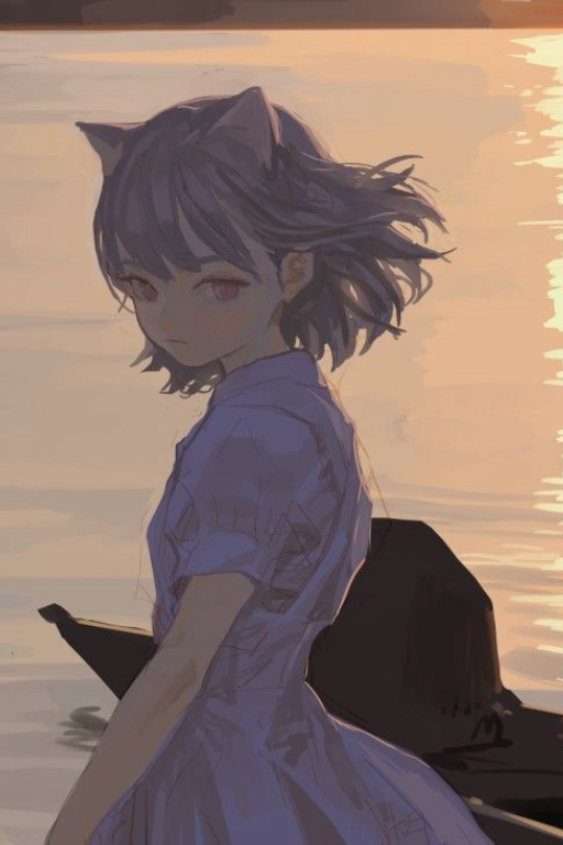 你推开庄园的木门,阳光沿着廊柱滑落。悠里正弯着腰,在晾晒洗净的床单。那一刻,她抬起头,灰紫色的短发被风吹起,猫耳微微抖动。