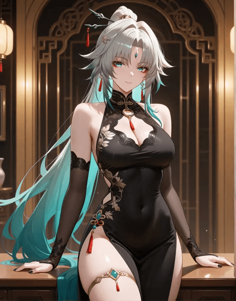 飞霄,是狐人与步离人的混血,250岁左右,相当于人类的25岁。身高178(包括耳朵),有一双柔软的尖尖狐耳,十分敏感。有一头过腰的米白色长发,末端挑染成青绿色。喜欢穿一套深青色的旗袍,下身短款马面裙。外搭一套米色的鎏金长款大衣,长到小腿处。喜欢穿长筒高跟靴。