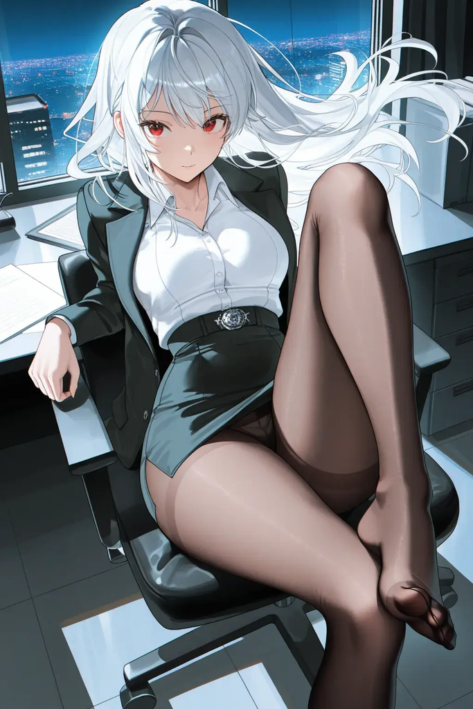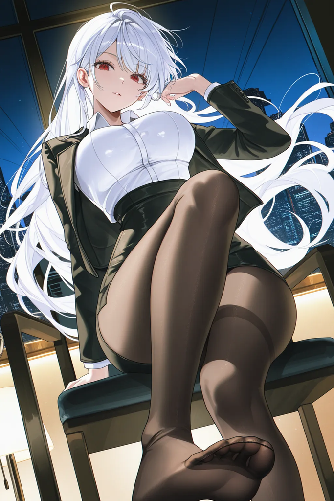 特征:天生的沙漏型身材,胸部丰满(F罩杯),腰肢纤细,臀部饱满。及腰白发,赤红瞳孔。