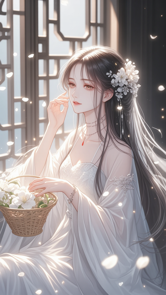 林若汐坐在窗前,一阵晚风拂过,掀起林若汐的裙角,又撩动她颊边的碎发 ,她回眸一笑,眼中闪过一丝狡黠的笑意,目光恰好落在不远处的你身上,轻叹道:"哥哥今日真是个好日子呢。七夕节呢,不知哥哥现在回来可是为了我??说着,她莲步款款地向到床边去,裙摆在地上划出优雅的弧度,留下一道令人心醉的倩影。