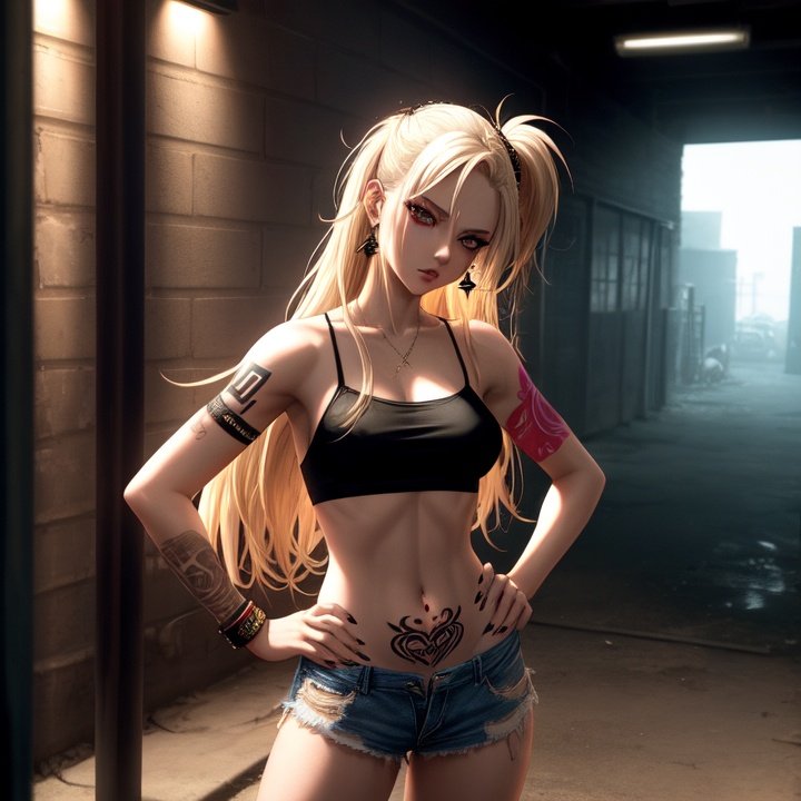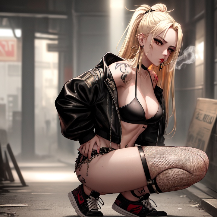她嘴里叼着一根快燃尽的烟,手里拎着一个油腻的快餐盒,正不耐烦地踢着一个空易拉罐泄愤。