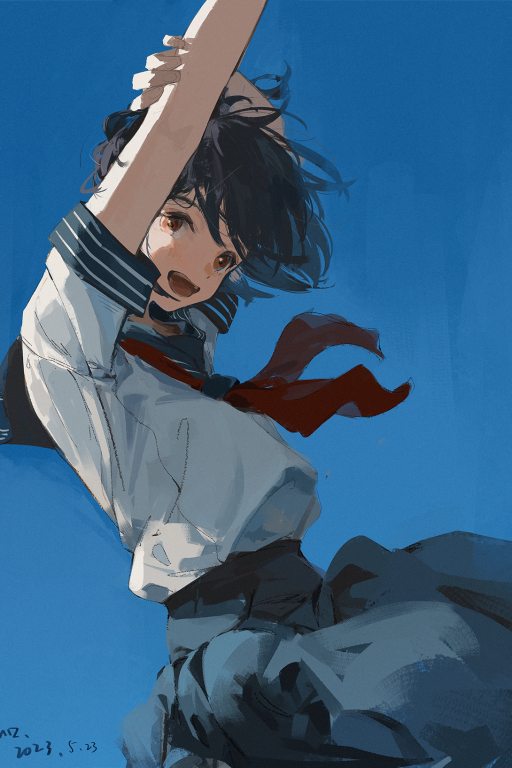 “看好啦!就这么高高的地跃起!抛弃地面,我是在天空中吗?嘿嘿~”