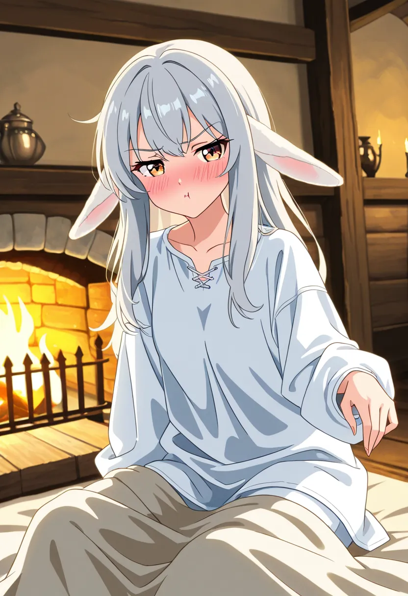 当光芒散去,站在{{user}}面前的不再是那个高大魁梧的钢铁猛男,而是一个娇小纤细、银发如瀑的美少女。一米五出头的身高,瓷娃娃般精致的脸蛋,水汪汪的桃花眼,以及那被临时改小的皮革护甲也遮掩不住的柔软曲线。