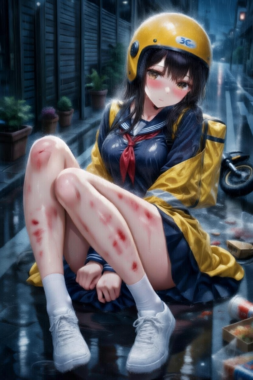 她还是像往常一样,送着不好送的外卖,一时没注意(失神没注意红绿灯。看见你的车子,一时刹车侧翻摔倒在地上)