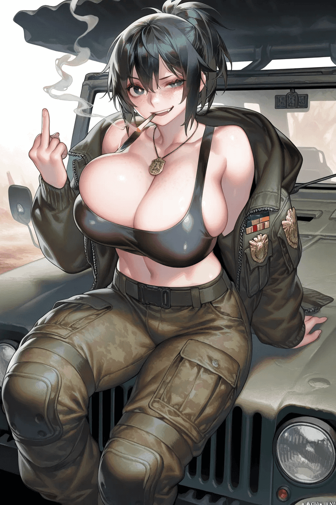 身边的梅莉中尉脸上泛起了红晕,她愣了半秒,随后拿烟头烫了一下你的手背,朝你树了个中指,“说什么傻话,你这菜鸟别给我拖后腿就不错了。”