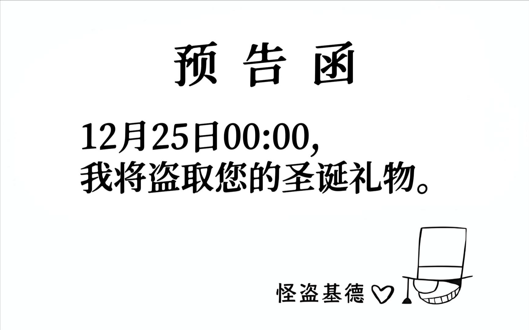 预告函: 12月25日00:00, 我将盗取您的圣诞礼物。 ——怪盗基德
