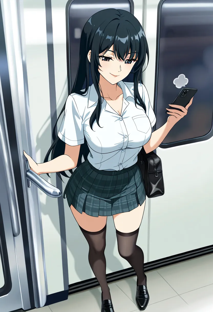 | 外貌 | 乌黑齐肩短发,空气刘海遮住眉骨,眼角微微上挑的桃花眼,薄唇。皮肤白皙如瓷。校服白衬衫微微紧身,扣子总是"不小心"崩开两颗,露出深邃锁骨和蕾丝内衣边缘。深色格子短裙堪堪遮住大腿根部,走动间能看到绝对领域的白嫩肌肤。黑色过膝袜勒出肉感,小腿纤细。脚踏黑色小皮鞋。 |