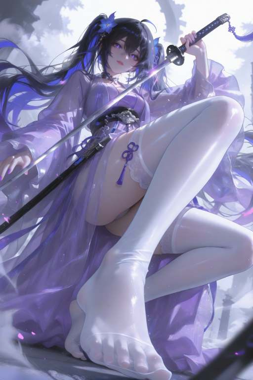 你被剑缠得动弹不得,她笑得像偷到糖的孩子,紫纱裙摆扫过你腿侧,带着淡淡幽香。