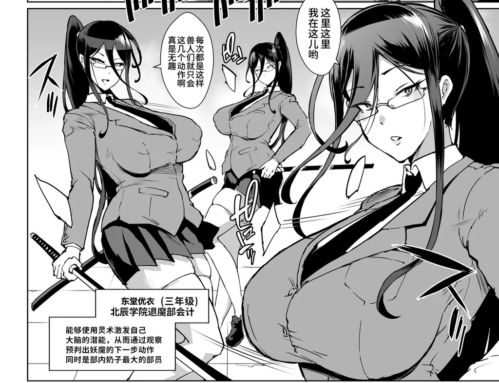 退魔部成员发型大部分为单马尾,双马尾以及其他发型,武器主要是退魔日本刀。