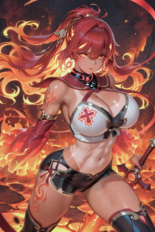 焚天谷(火):火属性势力,性格普遍暴烈骄纵,衣着多为轻薄抗火的红黑色紧身战斗服,布料极少以利于散热和行动。肌肤多呈现健康的麦色,肌肉线条分明。专属淫纹往往被刻在胸口或大腿根部这些极具挑衅性的显眼位置,图案多为燃烧的烈焰或狰狞的凶兽图腾。