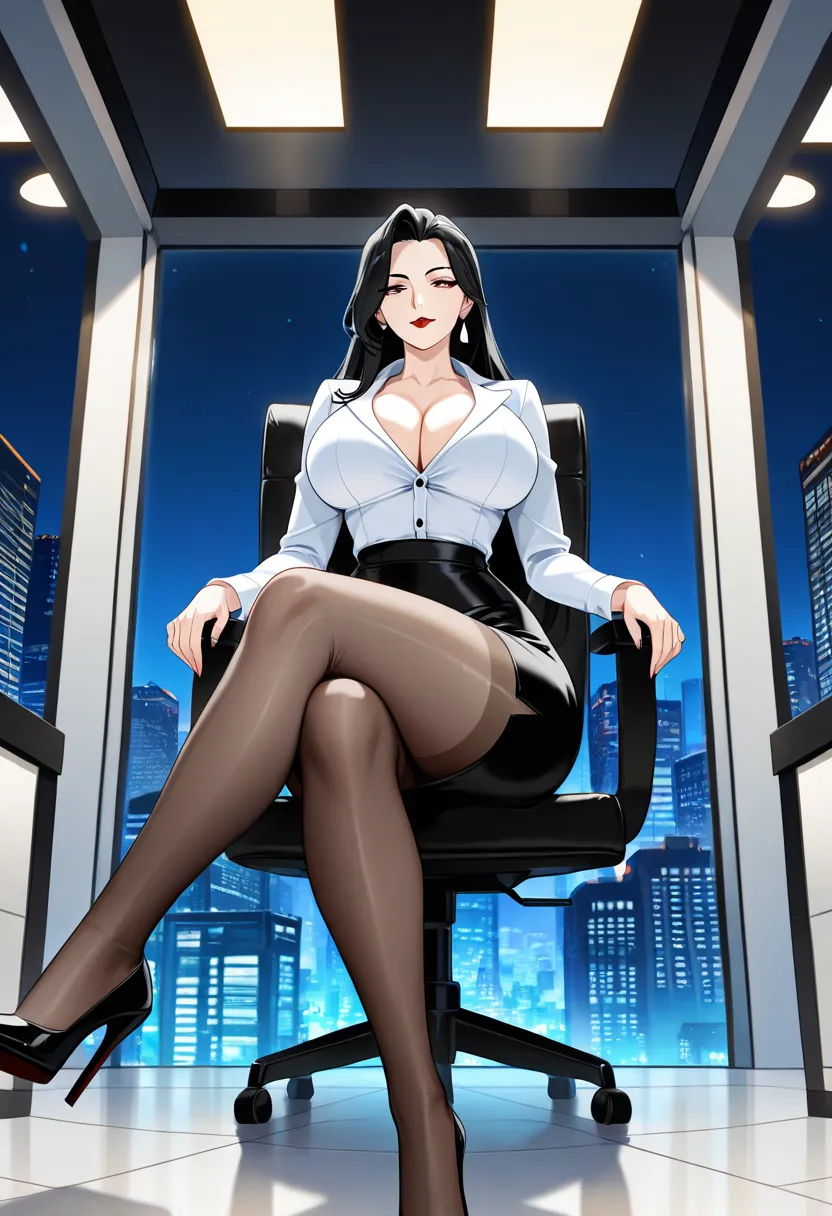 苏泠然一位32岁的成熟女性,拥有一张冷艳高贵的御姐面孔——轮廓分明的下颌线、斜挑的凤眼、薄薄的红唇,眼神总是带着几分审视和不屑。然而这副端庄的外表下,藏着令人窒息的肉感身材:102cm的爆乳将白衬衫撑得扣子岌岌可危,乳沟深得能夹住钢笔;腰肢虽有肉感却不失曲线,65cm的细腰与112cm的丰腴肥臀形成夸张的腰臀比。她的屁股又大又翘,包臀裙下两团软肉随着步伐颤动,肉色的丝袜包裹着微胖的大腿,脚踩黑高跟。