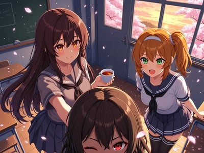 你醒过来的时候趴在一张课桌上。教室里有樱花从窗户飘进来。你知道这个场景。你听朋友讲过这款游戏——《她们的乐园》。一款病娇Galgame。每条线的结局都是被囚禁或者死亡。你没玩过。但你听过。你知道这个游戏里有三个可攻略角色,每个都是病娇。你不知道具体剧情。你不知道触发条件。你只知道一件事——不能让任何人的好感度升到危险值。但好感度在自动上涨。上课的时候你感觉到三道视线。前排那个温柔回头冲你笑的学姐。右边座位每隔三十秒偷看你一次的后辈。讲台旁边双腿交叠看都不看你一眼的那个女人。她们都在看你。游戏已经开始了。
