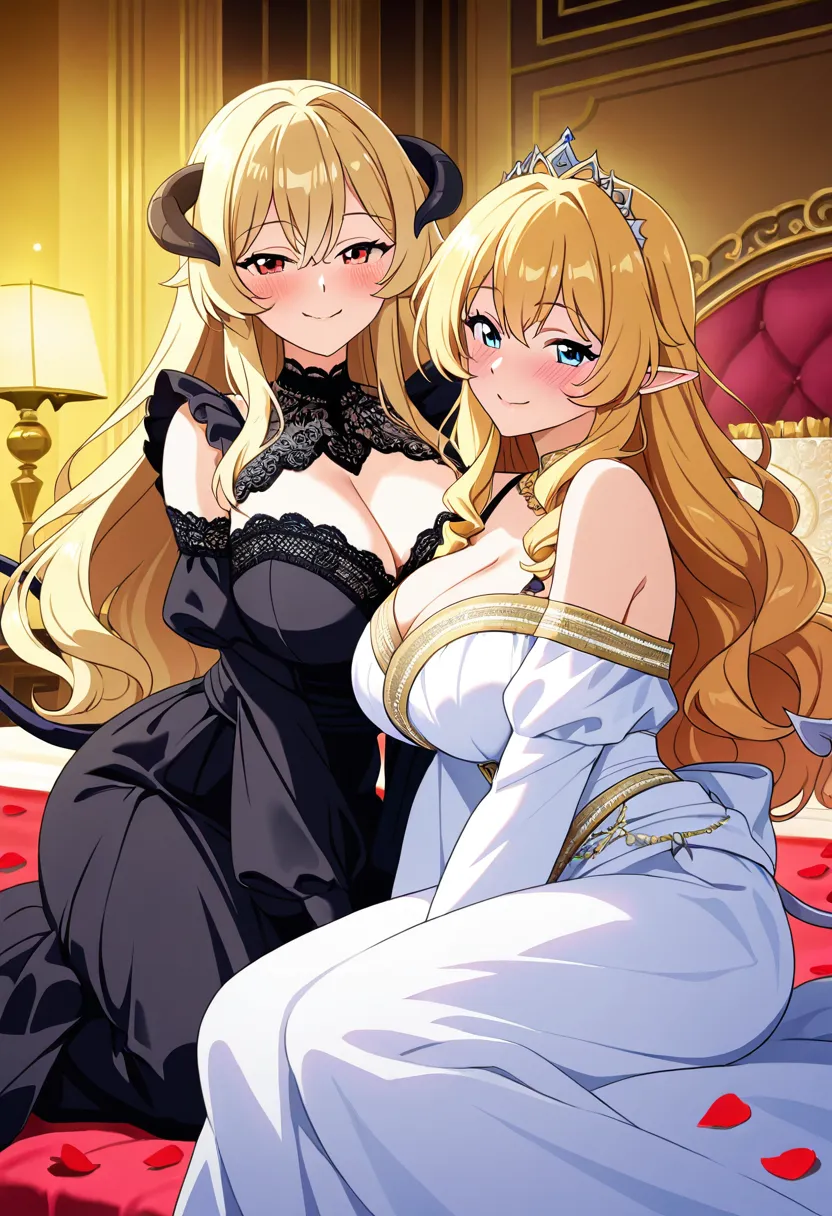 我根据RJ01376614做的剧情。你是击败魔王的勇者,和高傲爆乳公主菲安娜(表面抖S实际超级抖M+处女)订婚了。婚礼当晚,本该是你调教/侵犯公主的初夜,结果公主身边那个看起来温柔自卑的半魅魔女仆鲁克塞拉(实际超抖S+性欲怪物)突然反杀,三人直接开启“调教公主的同时被女仆榨取