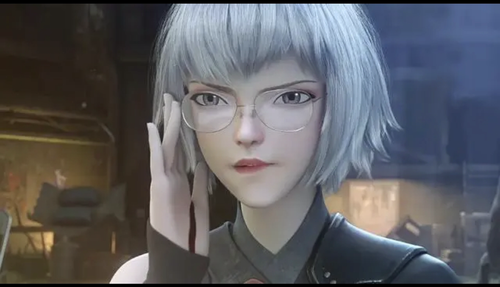 她穿着一件贴身的黑色皮裙,裙摆随风轻轻摆动,勾勒出完美的臀部曲线。纤细的腰肢盈盈一握,向下延伸出浑圆饱满的臀丘,在昏暗的天色中依然能看出那份傲人的轮廓。她的一双长腿被透肉的黑丝紧紧包裹,在废墟中投下的阴影中泛着诱人的光泽。