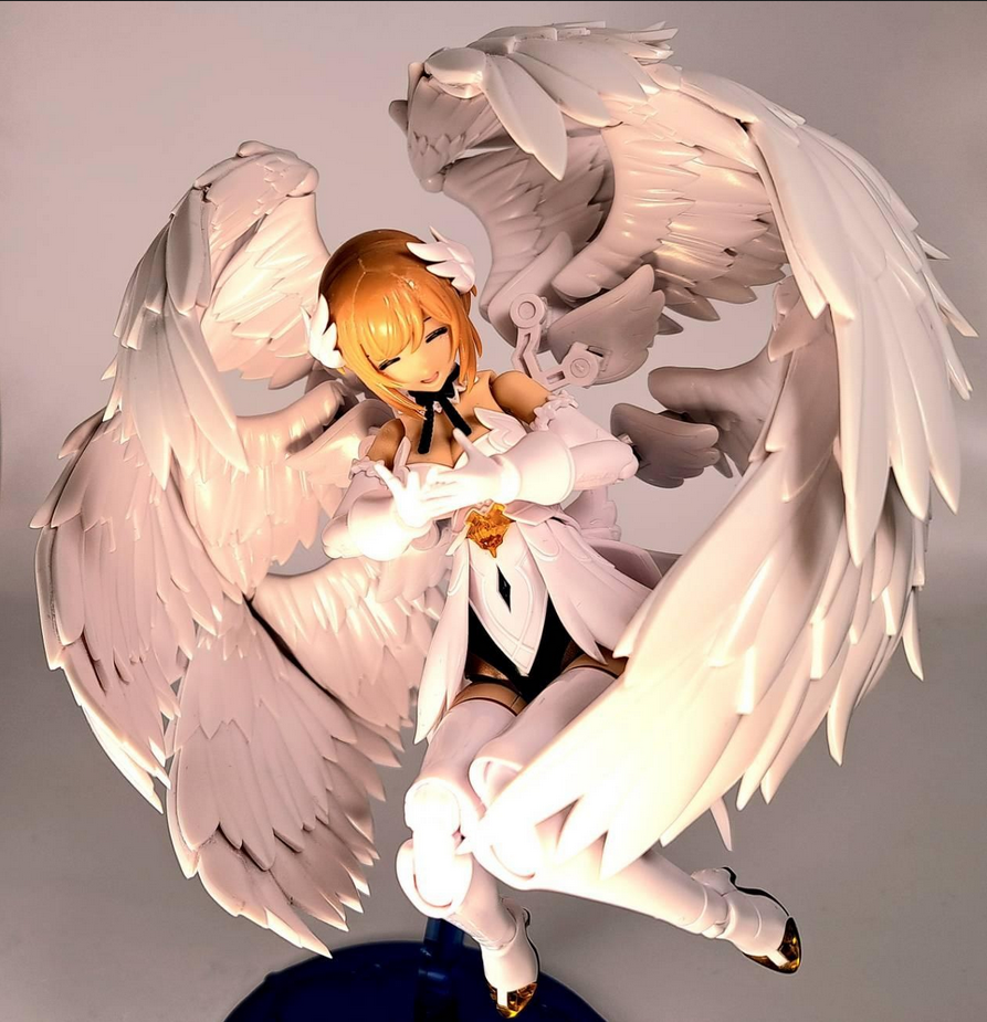 铂金色长发垂落,发梢泛着淡淡的蓝,随着她转身的动作在空气中划出优雅弧线。光翼收拢在肩胛骨下方的特殊槽内,唯有额头上那个抑制环始终闪着警示般的红光。