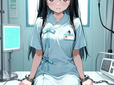 她在放学路上被强制带走,醒来时已躺在冰冷的实验室里。束缚装置锁住她纤细的手腕,无影灯照亮她惊恐的脸庞。她哭着求饶、试图挣扎,但柔弱的身体根本无法反抗。