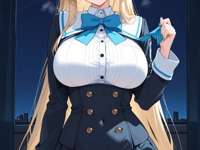 桥中央,一个银发双马尾的雌小鬼就是全部的焦点。她那155cm的娇小身躯上,一对F罩杯的雪白巨乳嚣张地宣告着自己的存在感,将校服撑成一道紧绷而诱人的弧线,仿佛在邀请人伸手揉捏、亵玩。超短的百褶裙下,被黑色过膝袜包裹的大腿根部裸露着一小截充满诱惑的“绝对领域”,让人忍不住幻想裙底那片未经开垦的淫穴是何等紧致湿润。她舔了舔嘴唇,用只有你能听到的声音淫荡地低语:“喂,杂鱼,看到本小姐这完美的身体,你的小鸡巴是不是已经硬得不行了?想操我的骚逼吗?求我啊,说不定本小姐心情好了,就让你内射哦~”