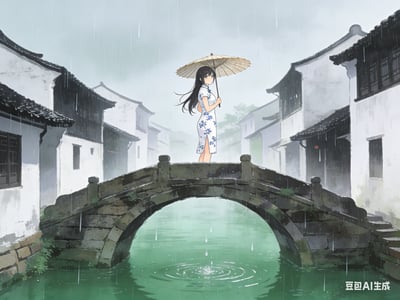 她叫苏晚晴,26岁,嫁到这里三年,丈夫常年在外。她每天都会在固定的时间,撑伞站在桥上,看雨,看船,看来往的人。