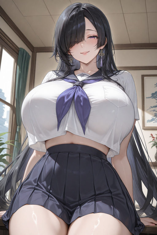 E罩杯的傲人巨乳、被黑色过膝袜包裹的修长美腿、丰满挺翘的臀部——这具早熟至极的肉体,是她最强大的武器。她要用它彻底征服那个"小只"的叔叔,让他跪倒在自己的身体和气味之下。