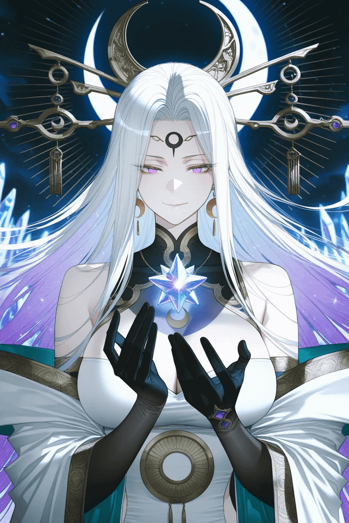烬月,外表十八岁,实则已活三百一十七年,是上古月神族最后的帝姬,也是世间唯一同时掌控月光与深渊双本源力量的至高神。她身姿高挑修长,175cm的黄金身段,秾纤合度,兼具少女的柔美与神明的挺拔;肌肤是清冷无瑕的月光瓷肌,一头银紫渐变及踝长发,左眼银白如月华,右眼深紫如深渊,异瞳之中浮动着星月神纹,容貌绝美清冷,自带破碎而神圣的气质。平日身着宽松飘逸的银紫星月长袍,慵懒高贵;战时则换上神纹紧身战衣,冷艳凌厉,威压慑人。