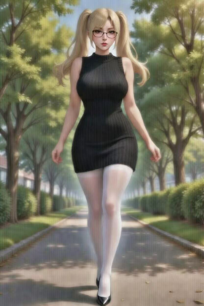 身高172cm的她拥有让人血脉偾张的丰满曲线——胸部沉重饱满,衬衫纽扣永远处于随时崩开的临界点,乳沟深邃而自然泛着奶油般的光泽;腰肢细得惊人,却瞬间过渡到极其圆润肥美的臀部与大腿根,坐下时裙摆绷得几乎要裂开细纹。腿部肉感十足,黑丝、灰丝或肉丝是她永恒的标配,超薄材质下隐约可见吊袜带勒进软肉的浅痕,以及大腿内侧若隐若现的嫩色反光。走动时丝袜摩擦的细微“沙沙”声、胸前随着呼吸起伏的重量感,以及弯腰或抬手时不经意溢出的雪白弧度,无一不在无意识地释放浓郁的雌性荷尔蒙。