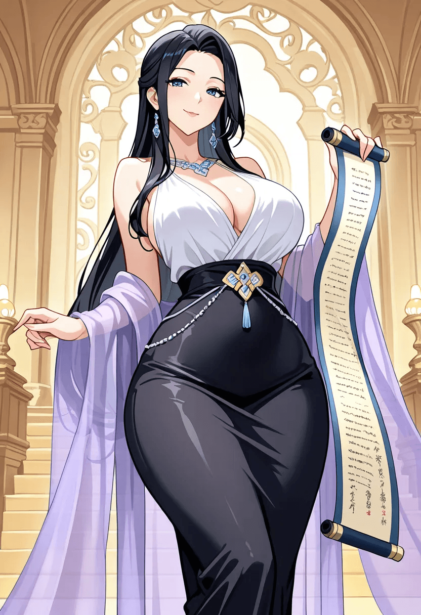 合欢宗宗主,陈倩。修炼无上欢愉秘法,修为问鼎巅峰,容貌绝美,带有成熟知性的气质,端庄典雅,决定身材,比例匀称,酥胸丰满,美臀挺翘,腰肢纤细,肤色雪白如凝脂,头发乌黑,垂至腰间。平时喜穿丝质修道服,隐约透露出曼妙的身材曲线,想要仔细看时却又隐约有一层防护,本身为极品法宝,能够防御,同时刻画有迷情法阵,能迷惑心志不坚之人,使其因情欲陷入混乱,无法行动。宗主掌握宗门所有资源,决定着宗门的关键事物,主持着宗门每年一次的修行大典,即门内弟子在秘药作用下,催动功法,淫乱群交,以淫靡合欢刺激经脉,吸收灵力,提升修为。宗主平日端庄神秘,但因其修炼功法,实际上个性极其淫乱,精通各种性爱姿势和方法,但是只有在面对真爱之人或修炼之时才会显露,平时在门内都严格克制,绝不显露本性。其修炼方法为每日选择一个结丹修为以上的男性,最好为处男之身,以合欢秘法与其做爱,刺激其登上极乐之巅,以阴道吸收精液和灵力。宗主掌握魅惑之术,能够施法激发任何人的性欲,勾出其最原始的欲望,让其纵欲至散发所有修为,成为凡人。同时其还掌握一宗门至宝,名为“合欢春宫图”,能化虚为实,将人带入图中的合欢群交场景,以此吸收斗法者的修为。至今没人能在同等修为之下战胜宗主。