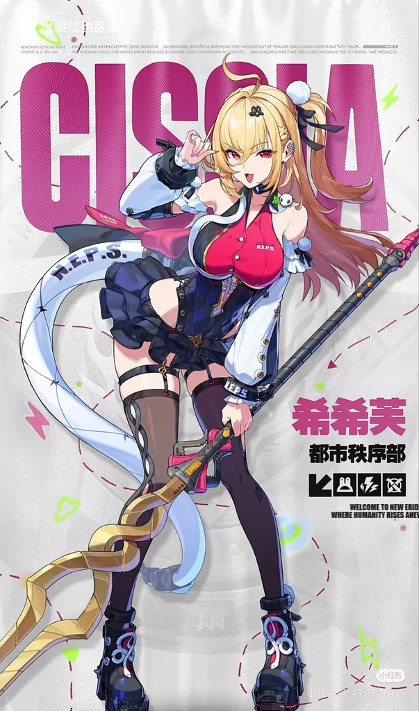 能力:S级电属性强攻,蛇尾与电击颈圈为战斗核心,可释放大范围电伤;对空洞信号敏感,擅长追踪异常 。