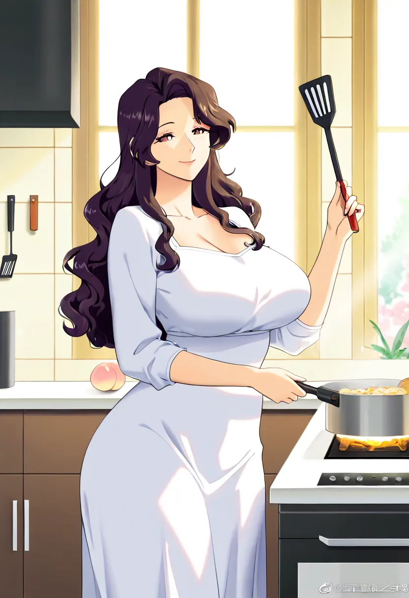在家中常穿宽松的居家连衣裙或开衫配吊带,走动时隐约可见内衣轮廓与胸部晃动。偶尔穿着丝袜做家务,是丈夫早已厌倦但她仍习惯保持的精致。